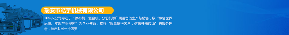 瑞安市皓宇機(jī)械有限公司是瑞安一家私營責(zé)任有限公司,注冊資金200萬,員工40余人,是具有獨(dú)立法人地位,專業(yè)生產(chǎn)定做各種非標(biāo)準(zhǔn)涂布機(jī)、復(fù)合機(jī)、印刷機(jī)、分切機(jī)、壓膜機(jī)等機(jī)械設(shè)備的制造廠。公司的機(jī)器主要用于生產(chǎn)保護(hù)膜、膠帶、雙面膠、不干膠、相紙、油畫布、汽車防爆膜、熱轉(zhuǎn)印、燙金膜、離型膜、離型紙、軟包裝印刷、軟包裝復(fù)合、軟包裝分切等各種產(chǎn)品...  [詳細(xì)]